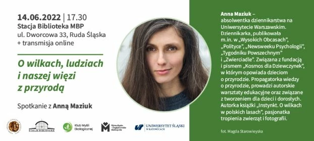 14 czerwca 2022 r. odbędzie się 76 spotkanie Klubu Myśli Ekologicznej, którego gościem będzie Anna Maziuk – dziennikarka, autorka książki „Instynkt. O wilkach w polskich lasach”, pasjonatka tropienia zwierząt i fotografii. Patronat nad spotkaniem objął Miesięcznik Dzikie Życie.