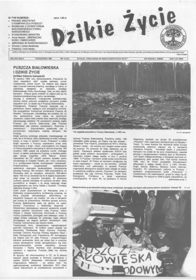W czerwcu 1994 roku stowarzyszenie „Pracownia na rzecz wszystkich istot” wydała pierwszy numer miesięcznika „Dzikie Życie”. Na okładce było zdjęcie dębu o ponad metrowej średnicy, wyciętego w marcu, w najbliższej odległości od rezerwatu ścisłego Białowieskiego Parku Narodowego. Dziś, po kilku latach kampanii, miejsce gdzie zrobiłem to zdjęcie jest już na obszarze powiększonego parku narodowego.
