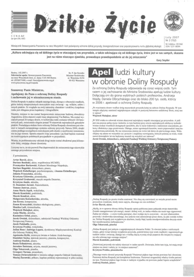 Jednym z większych polskich atutów w zjednoczonej Europie jest piękna, niezniszczona przyroda. Niestety przykładów braku jej poszanowania oprócz Doliny Rospudy jest więcej – Puszcza Białowieska, Tatry czy praktycznie całe pasmo Karpat poddawane są coraz większej presji inwestycyjnej. Dlaczego tak się dzieje, że nie szanujemy tego, co mamy najlepsze – dziedzictwa przyrody?