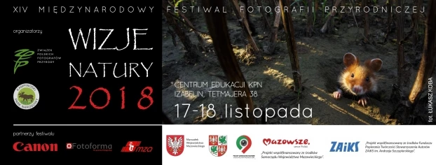 W dniach 17-18 listopada 2018 r. w Izabelinie pod Warszawą odbędzie się XIV Międzynarodowy Festiwal Fotografii Przyrodniczej Wizje Natury 2018 organizowany przez Związek Polskich Fotografów Przyrody i Kampinoski Park Narodowy. Patronat medialny nad Festiwalem już po raz czwarty objął Miesięcznik Dzikie Życie.