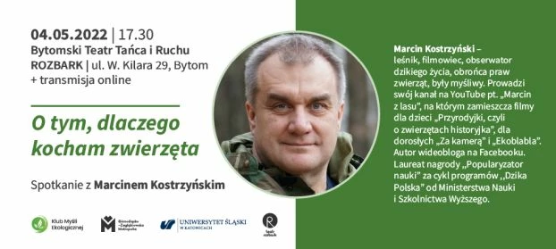 4 maja 2022 r. odbędzie się 75 spotkanie Klubu Myśli Ekologicznej, którego gościem będzie Marcin Kostrzyński, leśnik, filmowiec, obserwator dzikiego życia, obrońca praw zwierząt, były myśliwy. Patronat nad spotkaniem objął Miesięcznik Dzikie Życie.