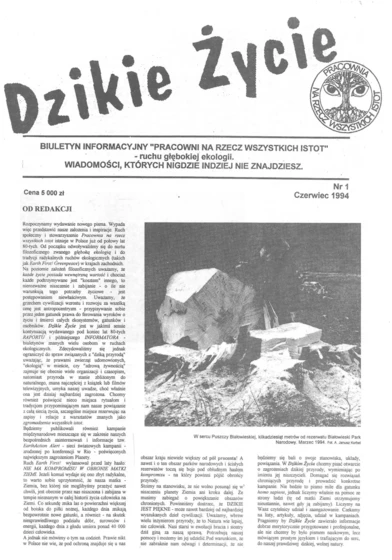 Chodzę od kilku dni po moim mieście, zawiadamiając massmedia o zbliżającym się Dniu Ziemi i organizowanych przez nas obchodach na Hali Łabowskiej i tylko siła, która spłynęła na mnie w Magicznym Kręgu Wszystkich Istot pozwala mi np. tłumaczyć spokojnie dziennikarzowi z lokalnego radia, że Dzień Ziemi odbywa się na całym świecie 22 IV. A on patrzy na mnie podejrzliwie i pewnie nie do końca wierzy, o wiele bardziej zainteresowany jakimś senatorem bawiącym (się) w Nowym Sączu. Kontaktując się z dziennikarzami rodzimego, a i warszawskiego chowu dopiero jasno widzę potrzebę zaistnienia takiego pisma jak „Dzikie Życie”. Jest ono po prostu niezbędne. Czas, który traci się na edukowanie opornie nastawionych do tego procesu dziennikarzy, można będzie wykorzystać o wiele lepiej.