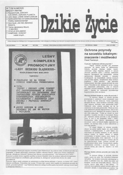 G. Wuerther omawia problem pożarów lasów i naszego stosunku do nich. W ub. roku w Stanach Zjednoczonych spłonęła rekordowa ilość lasów, łąk i pastwisk. Powszechnie uważa się pożary za zjawiska destrukcyjne i sprzeczne z naturą. Autor omawia te katastrofy z ekologicznego punktu widzenia i twierdzi, że są to często procesy naturalne służące odnawianiu ekosystemów. Ogień w lesie pochłania przede wszystkim martwą ściółkę i chrust, wytwarzając pokarm dla nowych roślin i zwierząt. Uwalnia wodę i składniki odżywcze w glebie dla tych organizmów, które przeżyły. Temperatura i dym niszczą również wiele patogenów roślinnych. Pozostałe pniaki i inne formy dostarczają schronienia wielu gatunkom zwierząt. Z kolei na pastwiskach ogień trawi wszystkie gatunki roślin, podczas gdy zwierzęta wyjadają tylko niektóre z nich, a więc po pożarze następuje wzrost bardziej zrównoważony. Ekologiczne skutki pożaru są inne od skutków działania ludzi, którzy usuwają martwe drzewa i likwidują drapieżniki ocalając za to stada trawożerców i niszcząc równowagę ekosystemu. Przypomnijmy: z ekologicznego punktu widzenia drzewa martwe są ważniejsze niż żywe – są schronieniem, magazynem żywności i szansą na odnawianie się cykli życia. Swobodnie rosnący las powstaje w wyniku naturalnego współzawodnictwa o wodę, pokarm i światło i w tej walce osiągnął równowagę. Wyrąb lasu przynosi więcej szkód niż pożar – gleba ulega zniszczeniu, wkraczają obce gatunki, powstają warunki do rozprzestrzeniania się chorób. Każde intensywne cięcia a szczególnie zręby zupełne to nieznany przyrodzie wstrząs i przerwanie procesów przyrodniczych, podczas gdy pożar jest zjawiskiem naturalnym i w historii ekosystemu powtarza się co jakiś czas. Trzeba się bronić przed pożarami, ale nie musimy z nimi walczyć za wszelką cenę. Są potrzebne dla wielu ekosystemów tak samo jak drapieżniki niezbędne są dla zwierzyny. Jeśli chcemy zachować bioróżnorodność, musimy także zachować naturalne procesy ekologiczne, które tę bioróżnorodność podtrzymują.