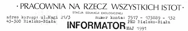 Rozpoczynamy wydawanie nowego pisma. Wypada więc przedstawić nasze założenia i inspiracje. Ruch społeczny i stowarzyszenie Pracownia na rzecz wszystkich istot istnieje w Polsce już od połowy lat 80-tych. Od początku odwoływaliśmy się do nurtu filozoficznego zwanego głęboką ekologią i do tradycji radykalnych ruchów ekologicznych (takich jak Earth First!, Greenpeace) w krajach zachodnich. Na poziomie założeń filozoficznych uważamy, że każde życie posiada wewnętrzną wartość i chociaż każde podtrzymywane jest „kosztem” innego, to nierozważne niszczenie i zabijanie – o ile nie warunkują tego potrzeby życiowe – jest postępowaniem niewłaściwym. Uważamy, że grzechem cywilizacji wzrostu i rozwoju za wszelką cenę jest antropocentryzm – przypisywanie sobie przez jeden gatunek prawa do ferowania wyroków o życiu i śmierci całych ekosystemów, gatunków i osobników. Dzikie Życie jest w jakimś sensie kontynuacją wydawanego pod koniec lat 80-tych RAPORTU i późniejszego INFORMATORA – biuletynów znanych wielu osobom w ruchach ekologicznych. Zdecydowaliśmy się jednak ograniczyć do spraw związanych z „dziką przyrodą” uważając, że prawami zwierząt udomowionych, „ekologią” w mieście, czy „zdrową żywnością” zajmuje się obecnie wiele organizacji i czasopism, natomiast przyroda w stanie zbliżonym do naturalnego, znana najczęściej z książek lub filmów telewizyjnych, umyka naszej uwadze, choć właśnie ona jest dzisiaj najbardziej zagrożona. Chcemy również poświęcić nieco miejsca rytuałom i tradycjom przypominającym nam nasze powiązanie z całą siecią życia, szczególne miejsce rezerwując na zapisy i relacje z warsztatów znanych jako zgromadzenia wszystkich istot.