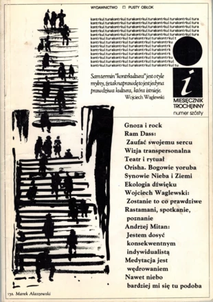 Buddyzm zen był dla nas narzędziem zmieniania świata, więc szukaliśmy sojuszników, budowaliśmy mosty z różnymi grupami alternatywnymi, które miały pewną wspólną wizję świata – teatr Grotowskiego, muzyka grupy Osjan, poezja wizyjna (Jarosław Markiewicz), sztuka buddyzmu tybetańskiego (Maciej „Magura” Góralski), teatr japoński no, psychoedukacja, inne grupy samorozwoju. Dzisiaj bym powiedział, że właściwie „Miesięcznik I” miał pełnić jakąś rolę kulturotwórczą, kreacyjną, dla dużej części progresywnego środowiska w Polsce. I chyba ją spełnił dobrze. Dużo osób robiło niezwykle ciekawe rzeczy, po 1989 roku nagle stało się to widoczne, ale ówczesny mainstream ich nie pokazywał. Nie każdy myślał tylko o tym, żeby zakładać biznes i zarabiać pieniądze – jak najwięcej i jak najszybciej.