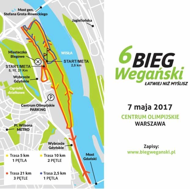Bieg Wegański „Łatwiej niż myślisz”/ Vegan Run „Easier than you think” to całodzienne wydarzenie, łączące radość biegania z kuchnią roślinną. Zawody odbędą się w Warszawie, w dzielnicy Żoliborz w bezpośredniej bliskości Wisły.